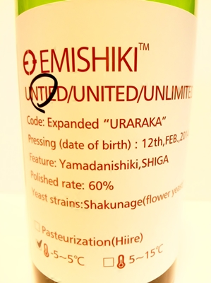 生原酒、アルコール度数16.8%、日本酒度+2、酸度1.65、アミノ酸度1.0