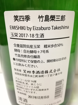 | 製造元 | 笑四季酒造(滋賀県甲賀市)