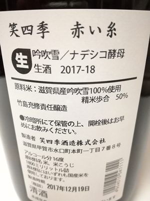 笑四季 新シリーズ 香り系! 「赤い糸」吟吹雪 生 入荷しました!