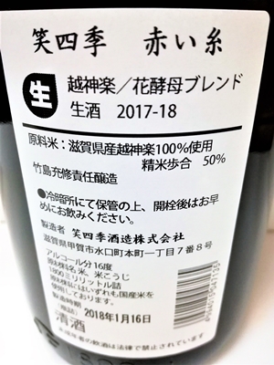 | 製造元 | 笑四季酒造(滋賀県甲賀市)