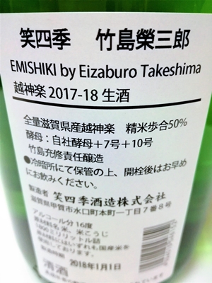 越神楽という竹島さん思い入れのある米に濃醇ではなく笑四季らしい甘みをのせてきた純米大吟醸造りの「竹島榮三郎」!