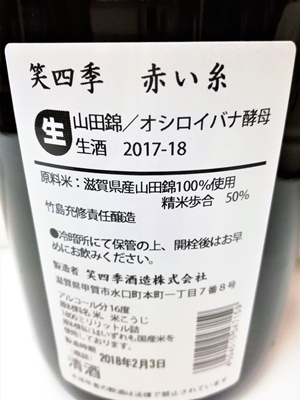笑四季 新シリーズ 香り系! 「赤い糸」山田錦 生 720ml完売しました! 1800mlサイズは残り僅少!