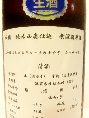 神開 純米山廃仕込 無濾過生原酒 27BY 1800ml