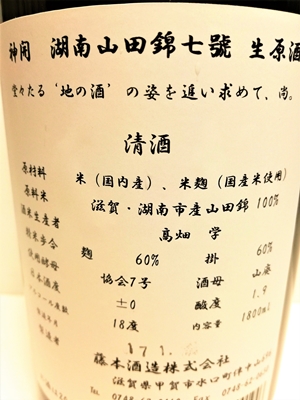 | 製造元 | 藤本酒造(滋賀県甲賀市) |