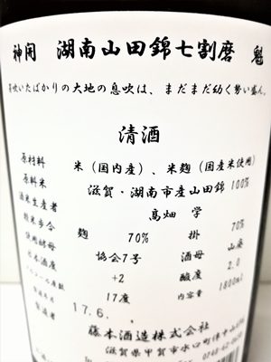 神開 湖南山田錦七割磨 28BY