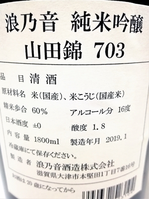 浪乃音 純米吟醸 山田錦 703 生原酒