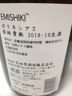 立ち香は酸とスパイス様の香りが混在し、引きこむとしっとりとした甘味とキレ、クリアで余韻の引きも早いようです。ニュータイプ清酒の趣きと南国的な絶妙なバランスの意欲作を是非ご賞味ください。