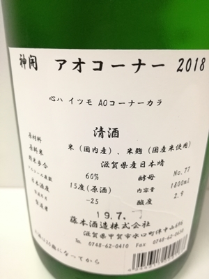 | 製造元 | 藤本酒造(滋賀県甲賀市) |