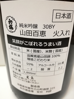 | 製造元 | 安井酒造場(滋賀県甲賀市土山町) |