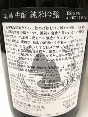 北島 生酛 純米吟醸 玉栄50% 28BY