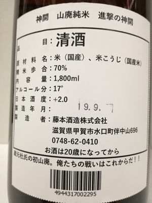 このラベル何ですのん!と突っ込まざるを得ない一本は藤本社長の初の山廃純米「進撃の神開」!