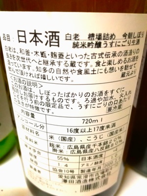 白老 槽場詰め 今朝しぼり 純米吟醸 うすにごり生酒 R1BY