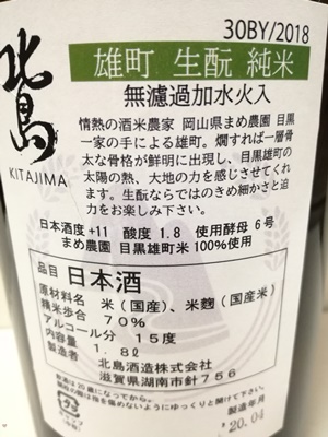 北島 生酛純米 雄町 無濾過加水火入 30BY