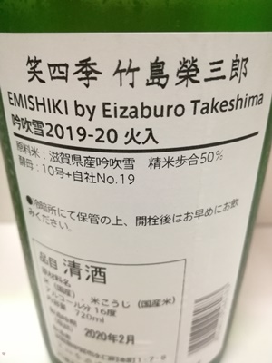 笑四季 竹島榮三郎 吟吹雪 2019-20 火入