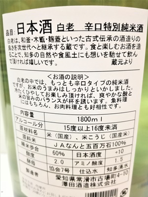 知多半島は常滑の「白老(はくろう)」を醸す澤田酒造さん!