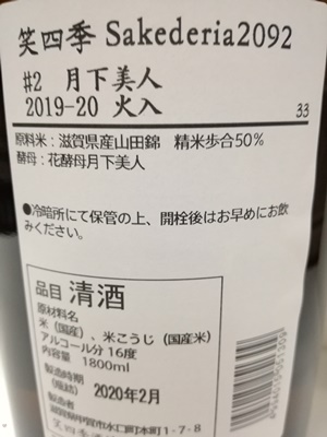 第2弾は月下美人酵母×山田錦使用、穏やかな香りからスルッと喉を潤す軽快な味わい、笑四季らしいキレイな甘みがシャープに切れていきます。