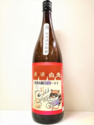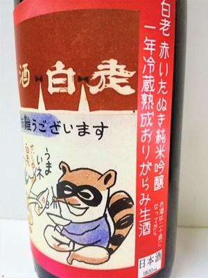 たぬきのラベルがかわいい…赤いたぬきは広島産2種のお米(千本錦,八反錦)を使用した、純米吟醸生原酒。