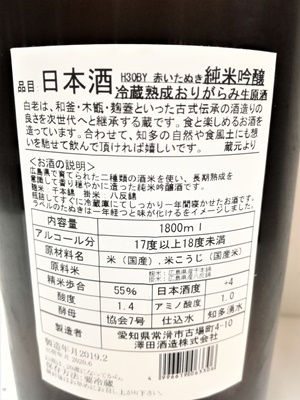 現在1800mlのみ30BYの冷蔵熟成おりがらみタイプとなります(7号酵母)。
