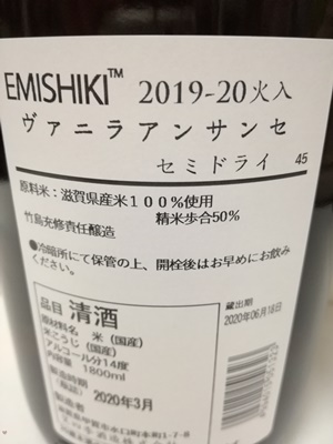 笑四季 ヴァニラ アンサンセ セミドライ  火入 2019-20 1800ml