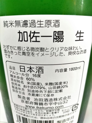 冬場は「クラウド」という無濾過純米生原酒がありますが、こちらは販売店限定ブランドの「加佐一陽(かさ いちよう)」!