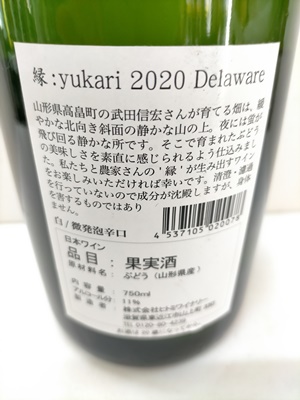 武田信宏さんのデラウェアを搾汁し低温で自然醗酵させ、瓶内で最終醗酵を終わらせています。