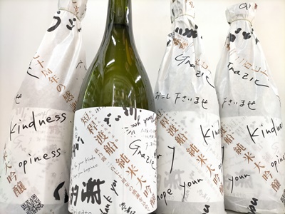 弊社の感謝の言葉を手書きメッセージにしてラベルにしました。