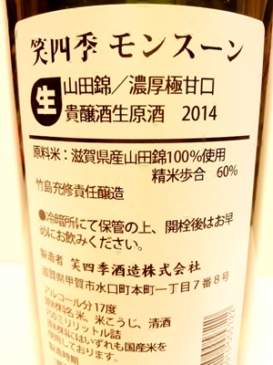 笑四季モンスーン 玉栄 貴醸酒生原酒2014 750ml