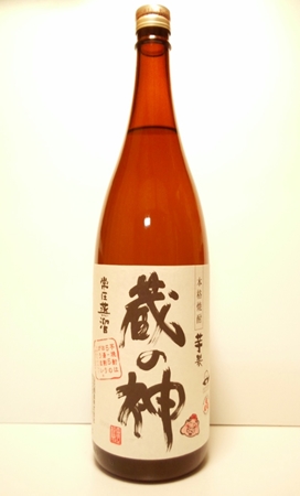 本格焼酎「蔵の神」は、まろやかで上品な口当たりで、お湯割りや水割りにしても、芋の香りは豊かで味のコシも崩れない、旨くちの逸品です。
