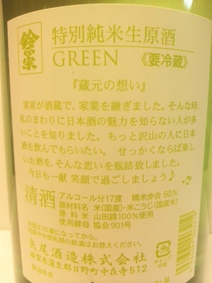 鈴正宗 特別純米 GREEN 生原酒 1800ml