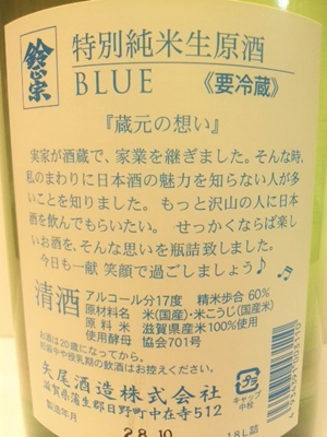 鈴正宗 特別純米 BLUE 生原酒 1800ml
