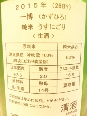 一博 純米 うすにごり 生酒 26BY 1800ml