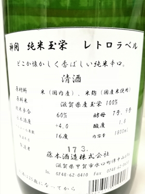 | 製造元 | 藤本酒造(滋賀県甲賀市) |