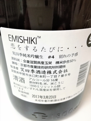笑四季 純米吟醸生 滋賀渡船二号「僕が僕であるためのエトセトラ」 720ml