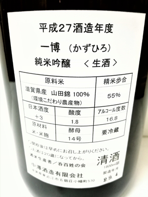 一博 純米吟醸 生酒 27BY 1800ml